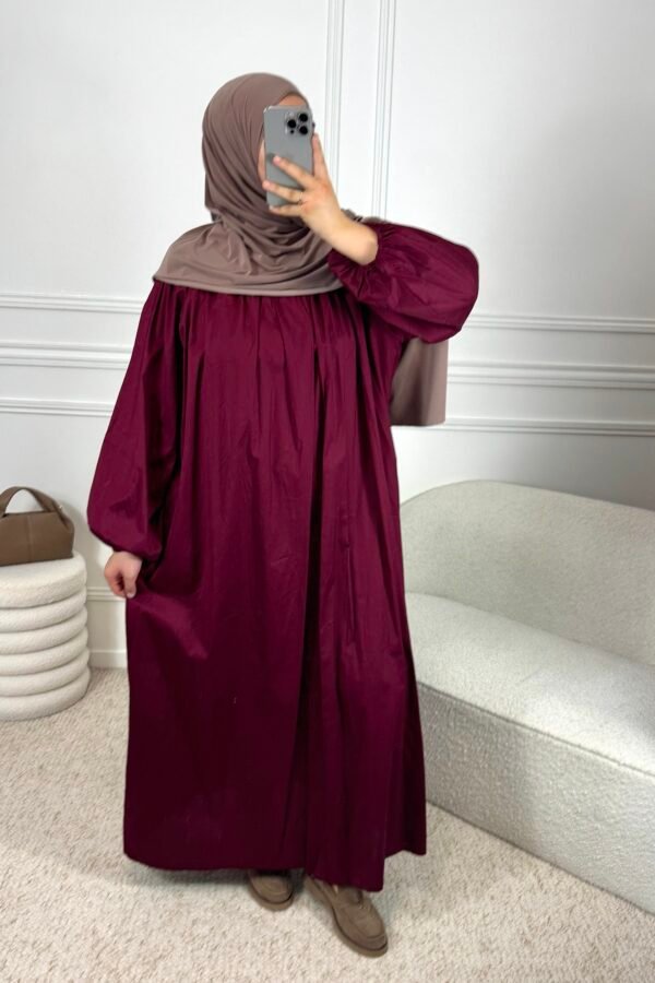 Abaya en jean chemise – bordeau