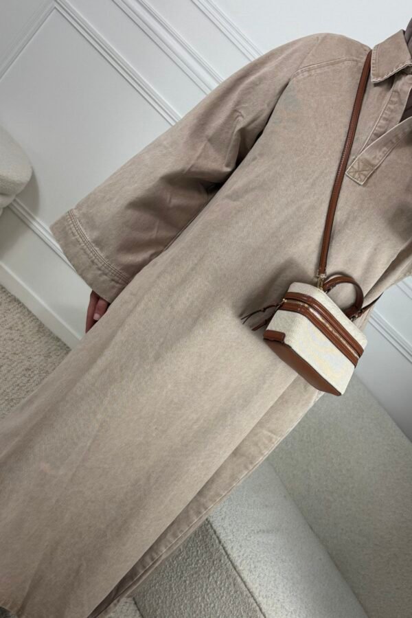 Abaya en jean chemise – taupe