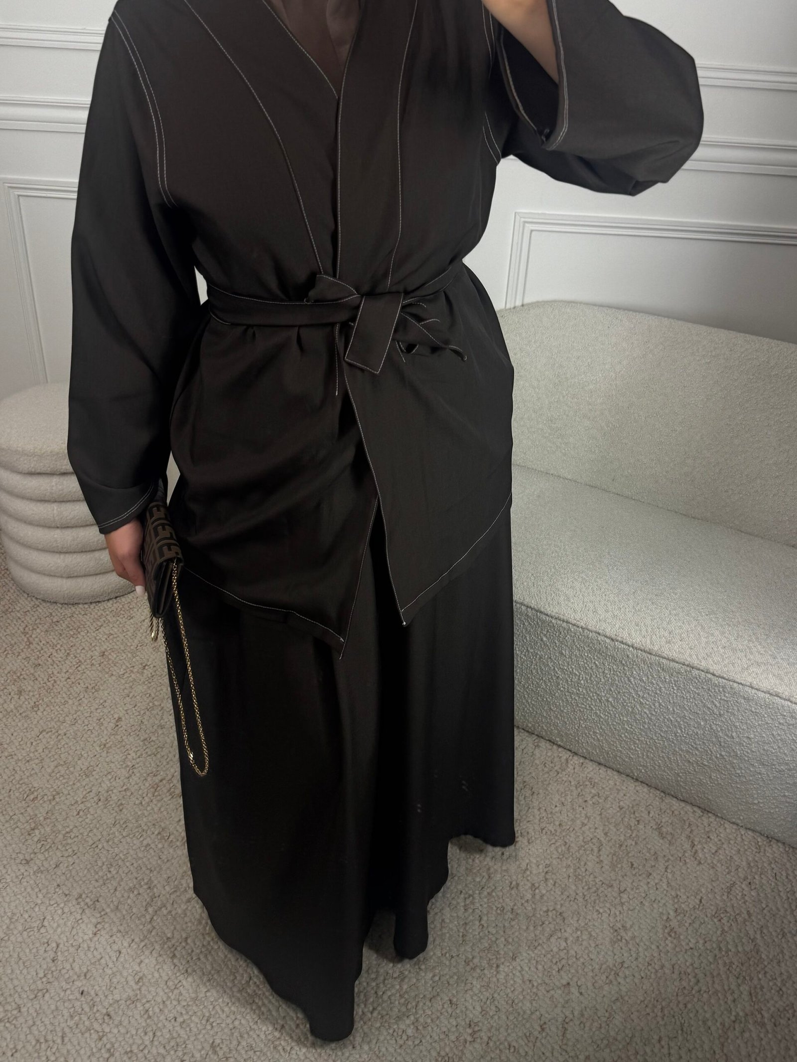 Le haut se distingue par ses coutures apparentes blanches qui font tout le charme de la pièce.