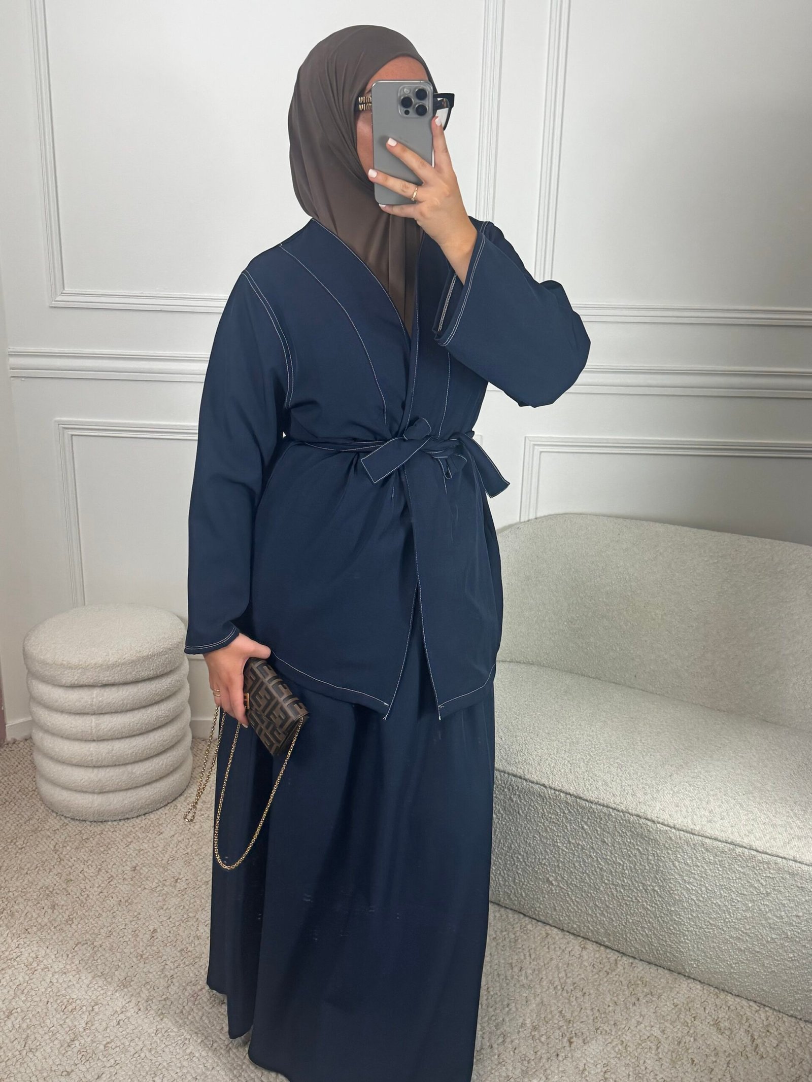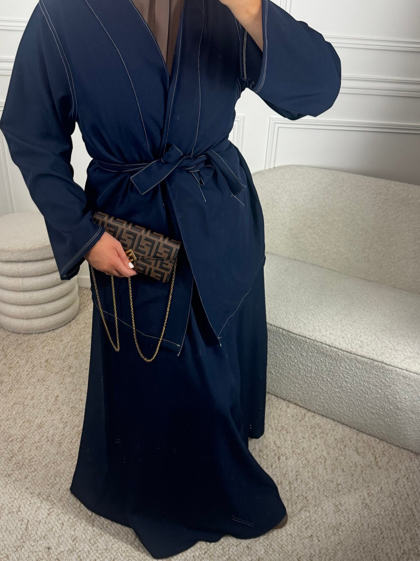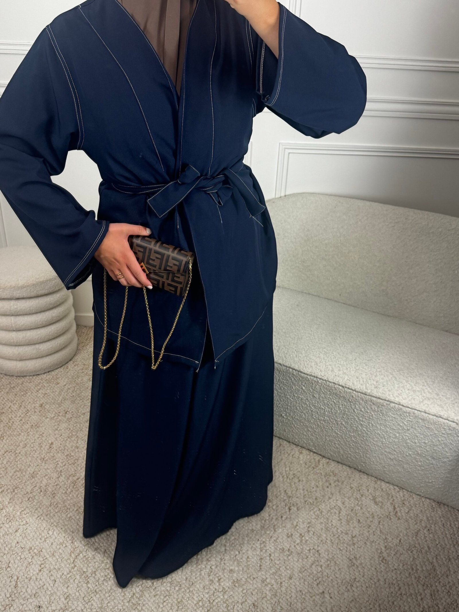 Le haut se distingue par ses coutures apparentes blanches qui font tout le charme de la pièce.