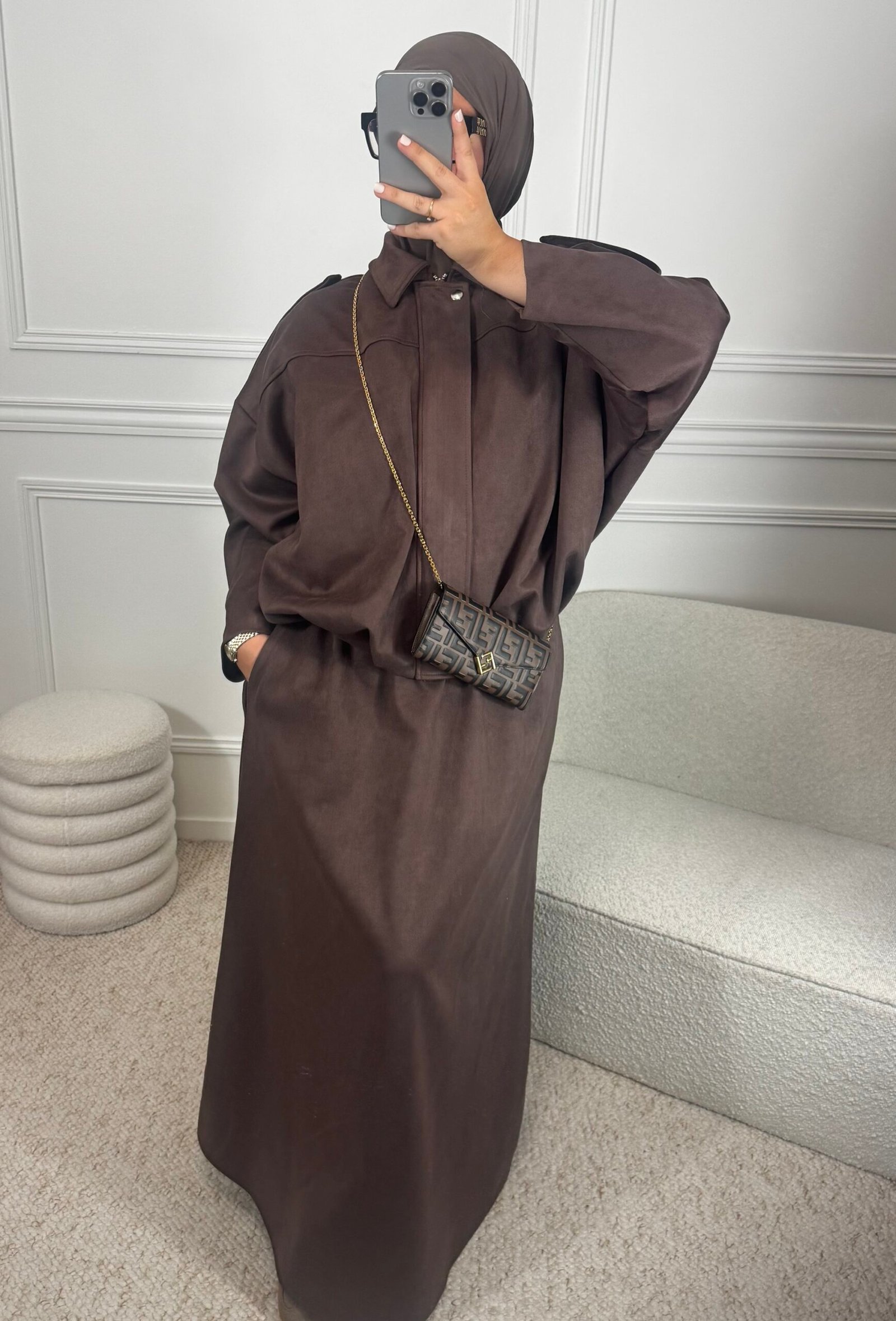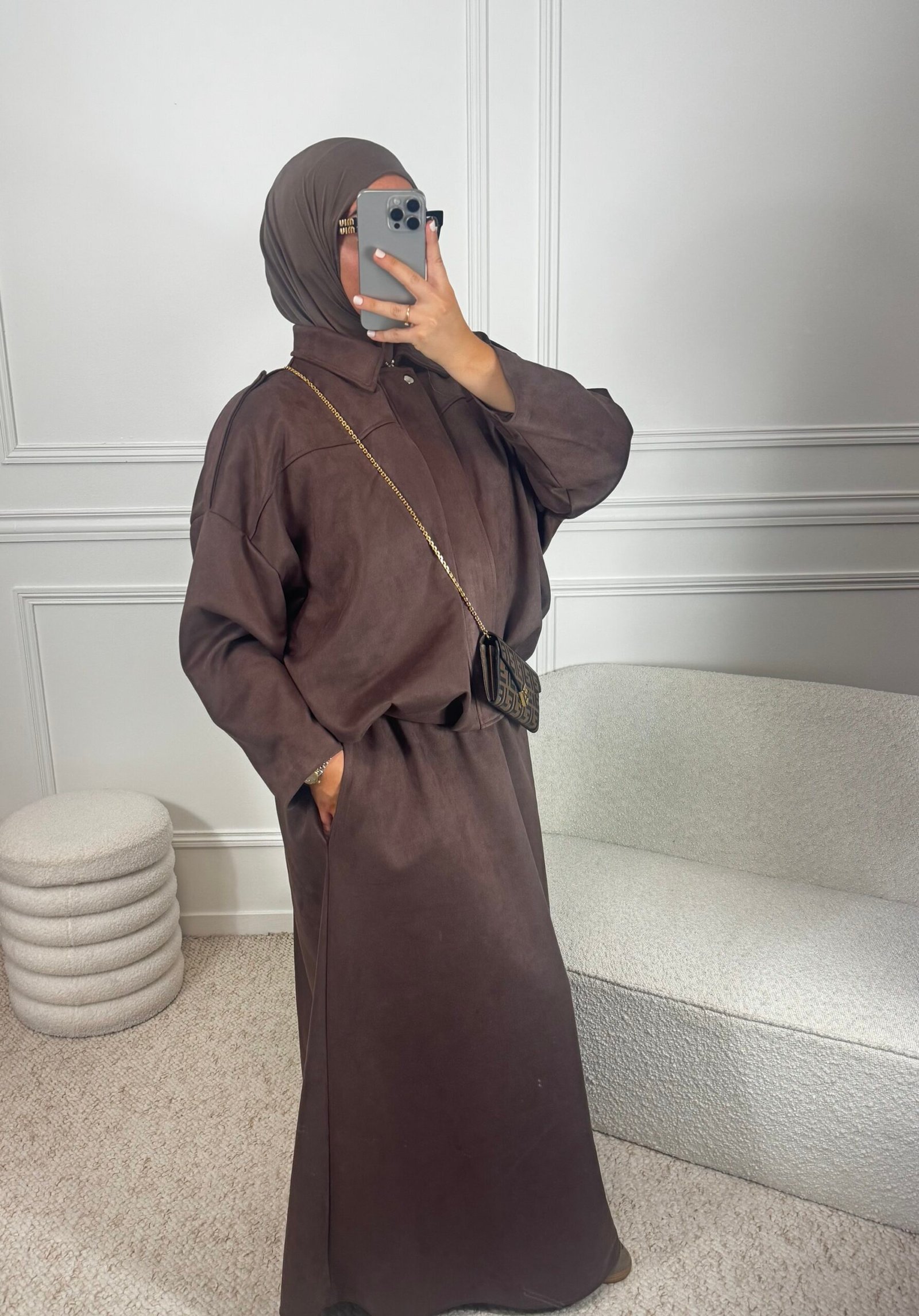Un ensemble tendance en daim, doux et agréable au toucher.