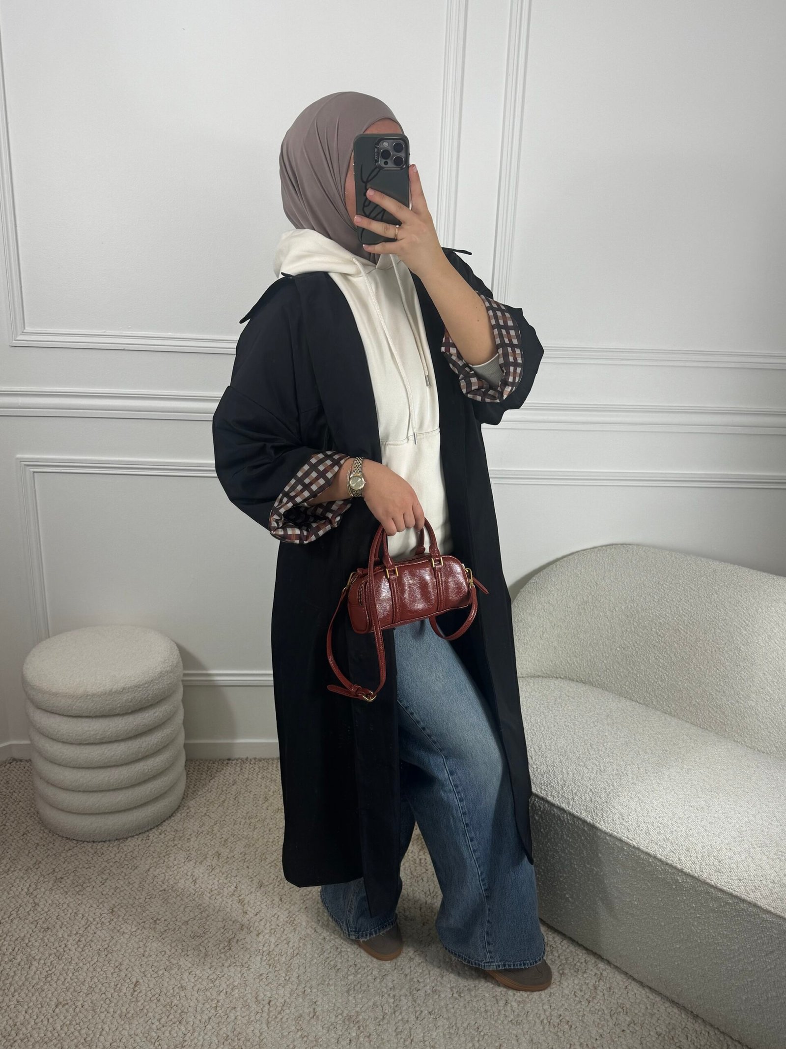 Cette parka longue de qualité possède des boutons sur toute la longueur. Les manches révèlent un intérieur à petits carreaux quand on les retrousse, pour une touche discrète et originale.