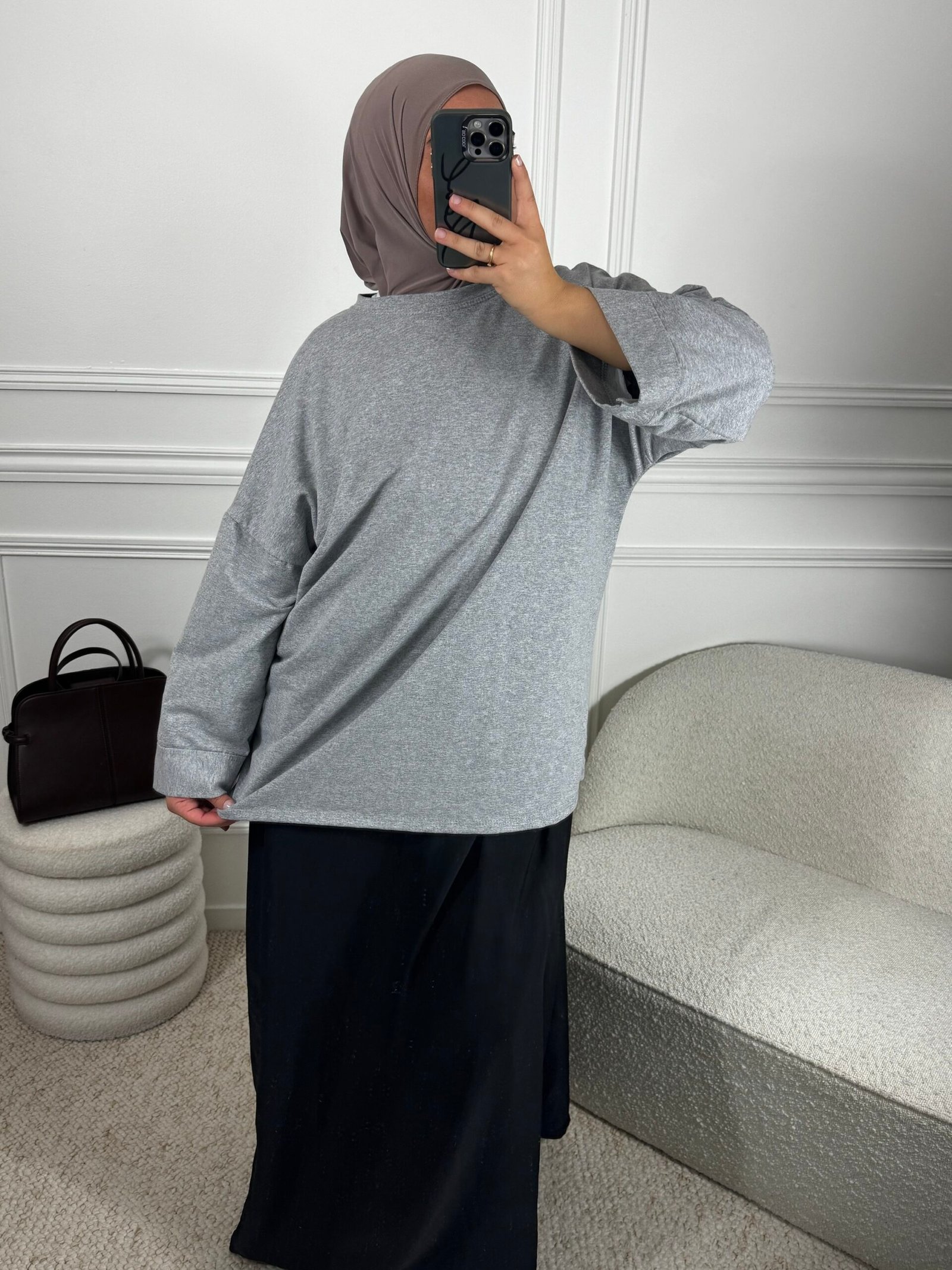 haut à manches longues, parfait pour l’été. Fabriqué dans une matière légère et fluide, il offre un confort optimal tout en restant simple.