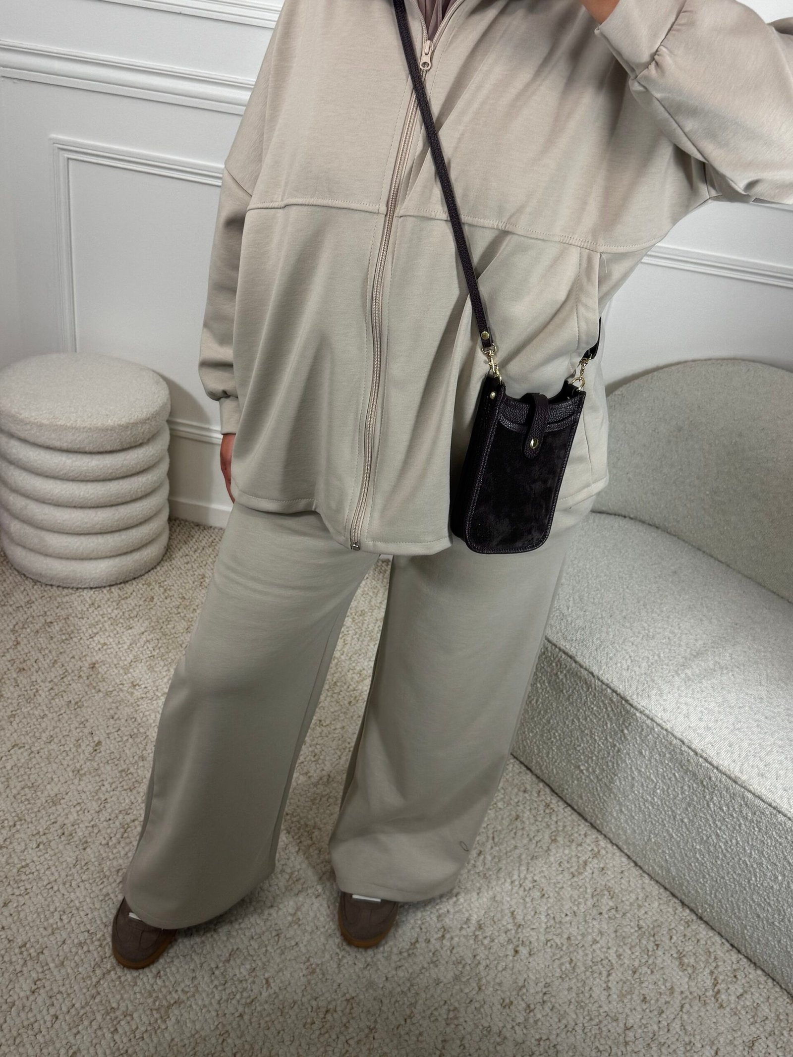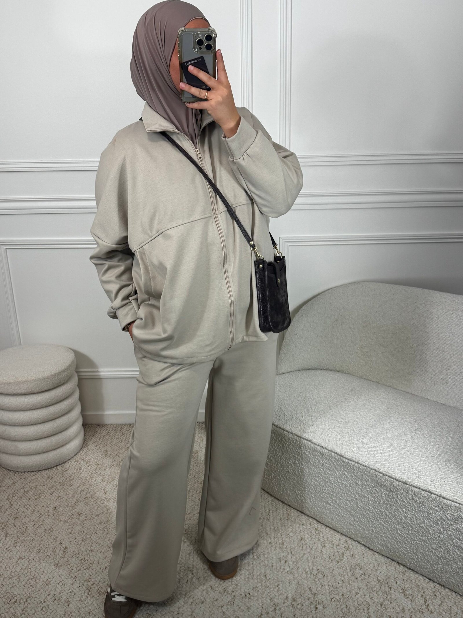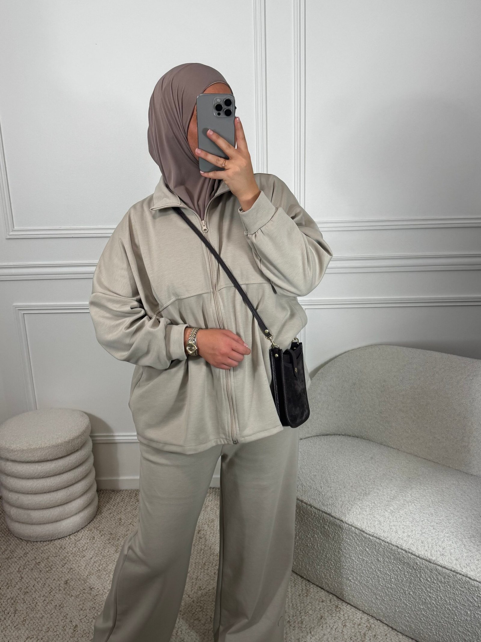 Un ensemble léger et pratique, style streetwear. Le pantalon possède des poches, la coupe est confortable, et le gilet apporte une touche sportive. Idéal pour le sport ou la vie quotidienne.