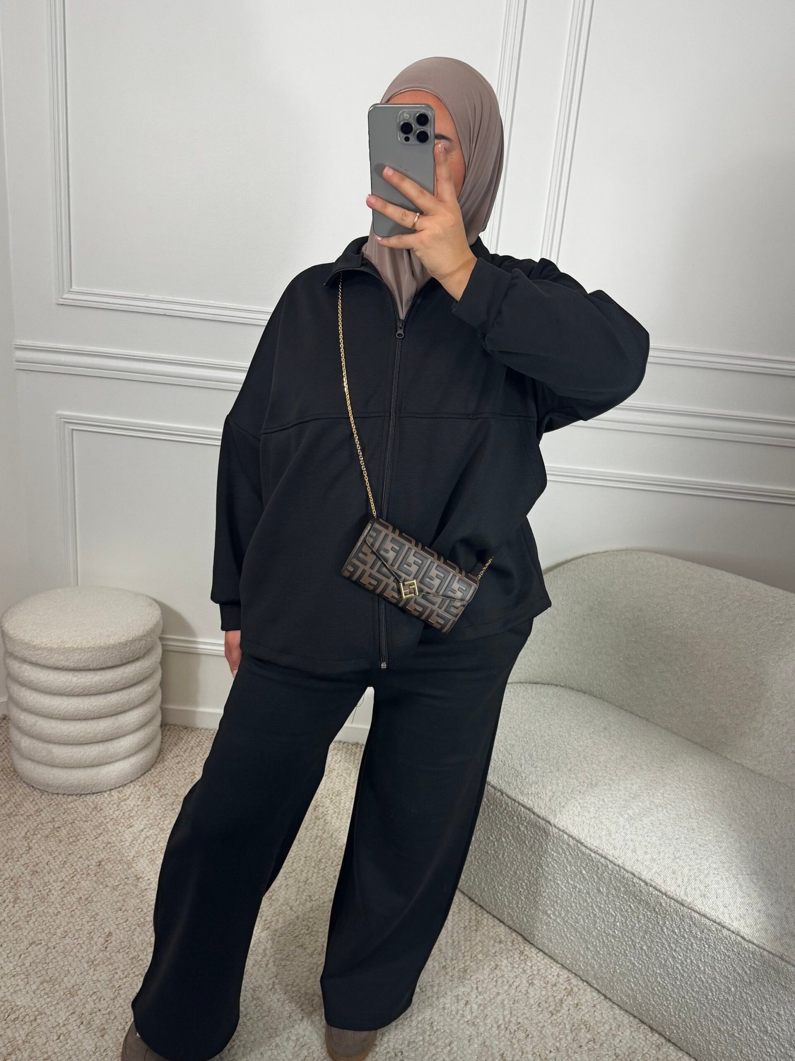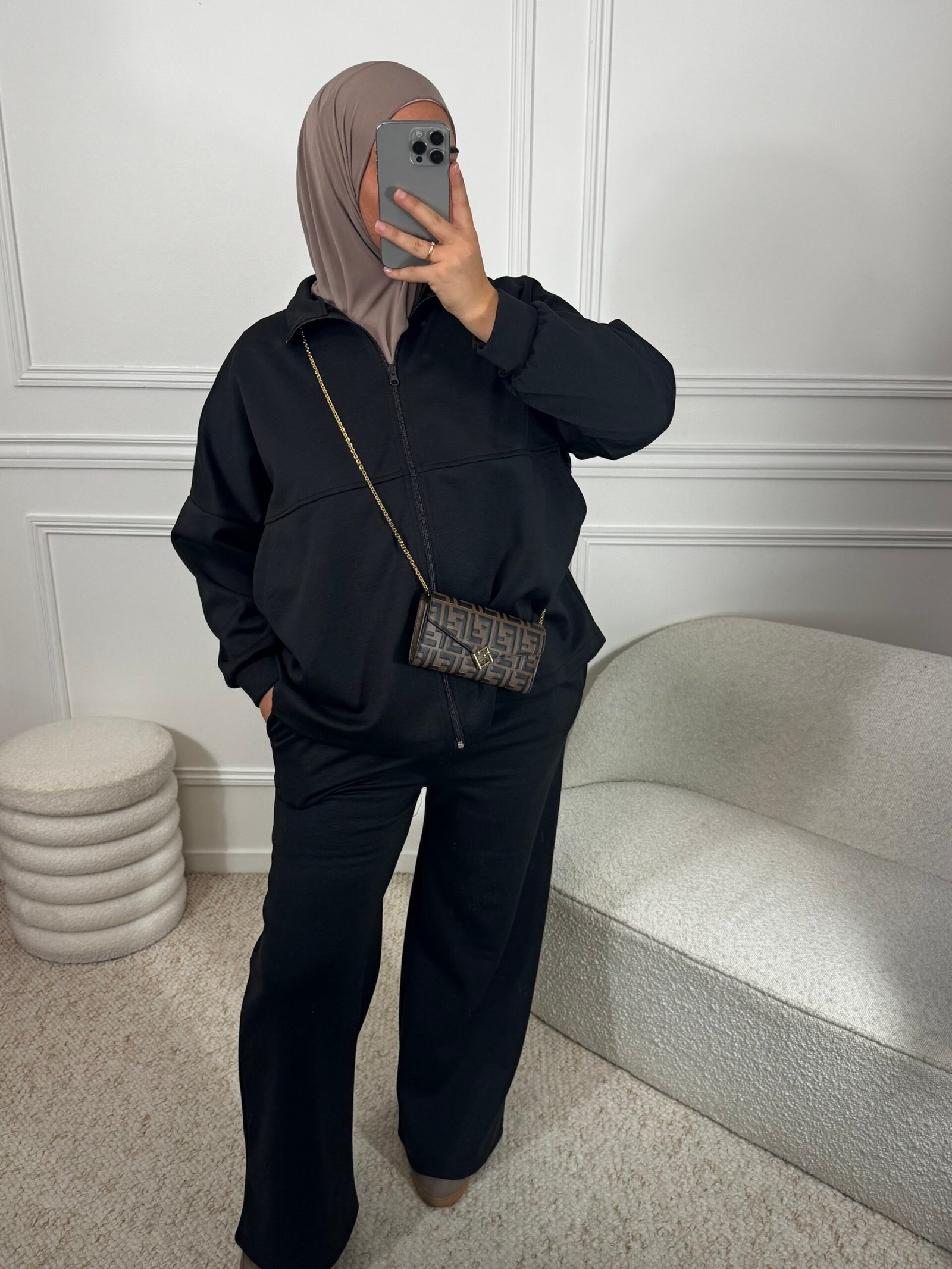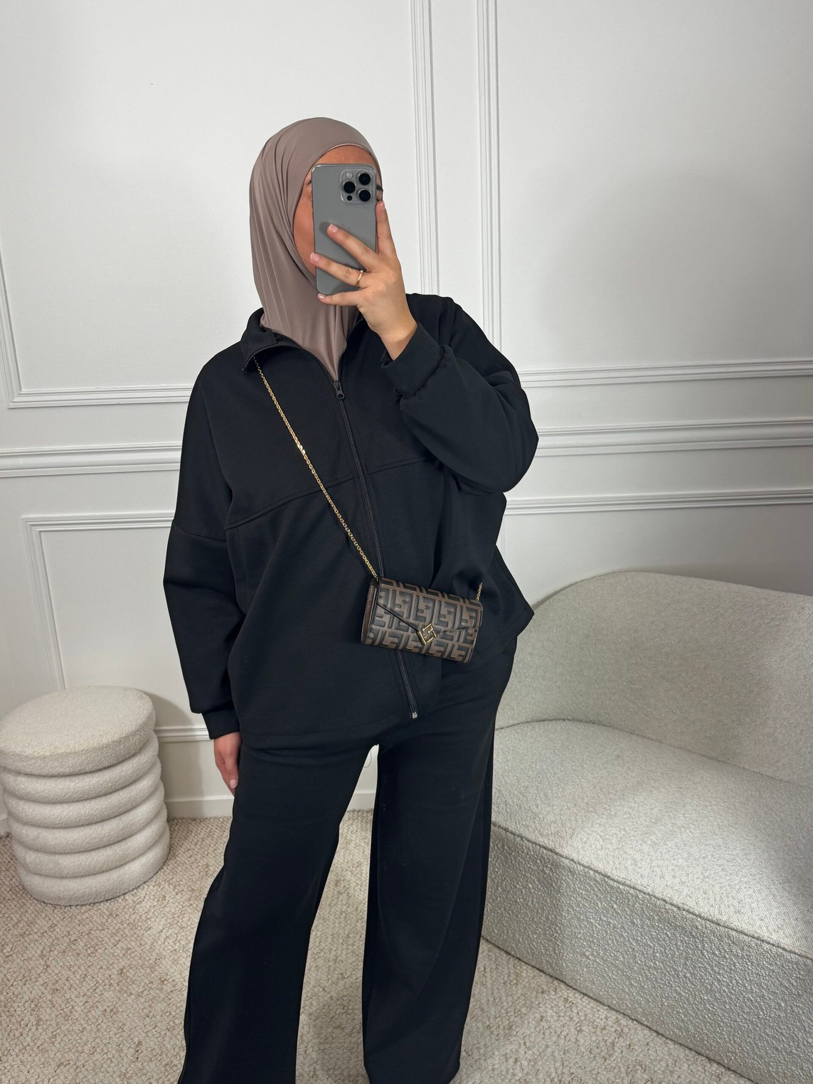 Un ensemble léger et pratique, style streetwear. Le pantalon possède des poches, la coupe est confortable, et le gilet apporte une touche sportive. Idéal pour le sport ou la vie quotidienne.