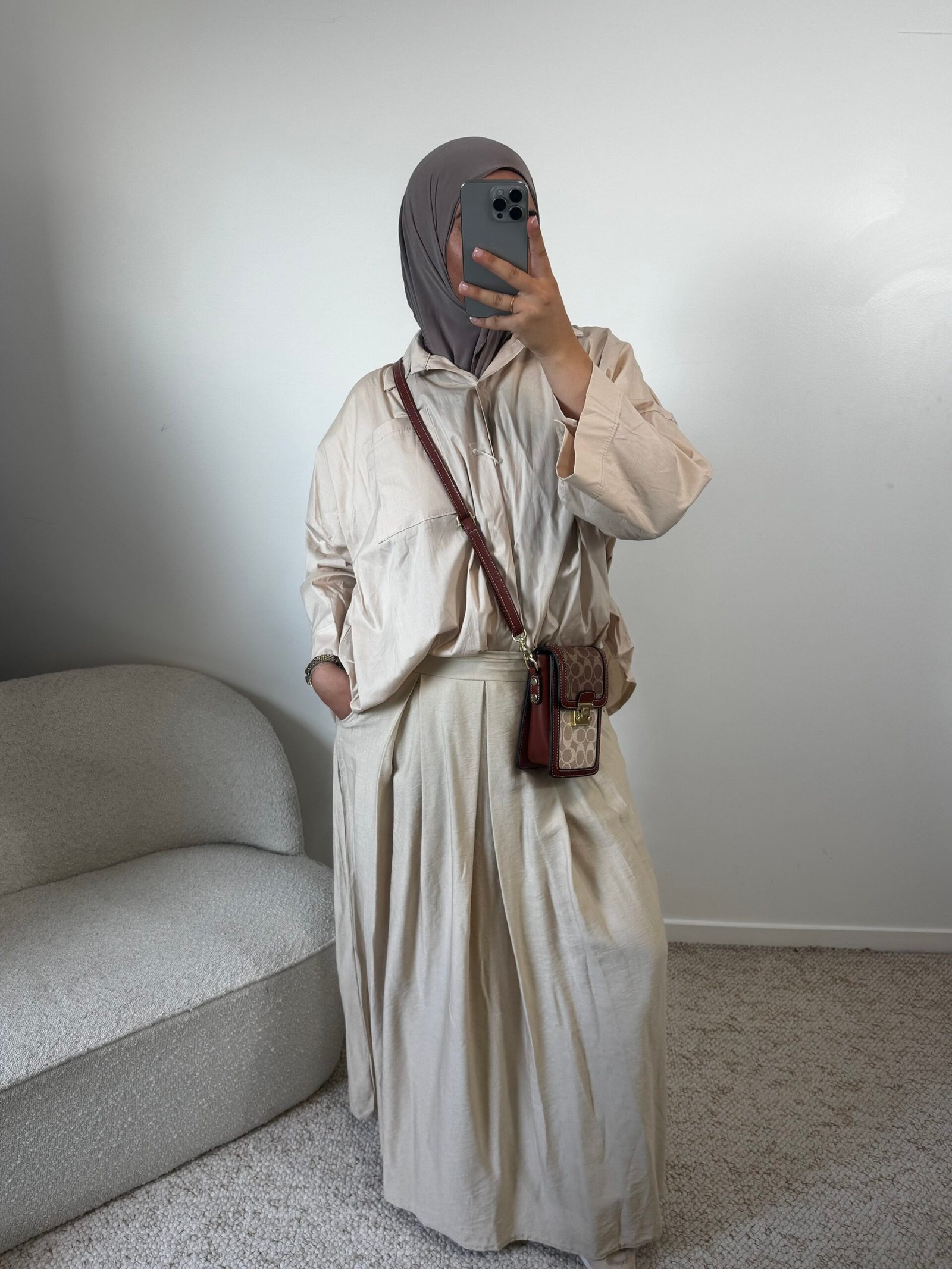 Jupe effet lin fluide – beige