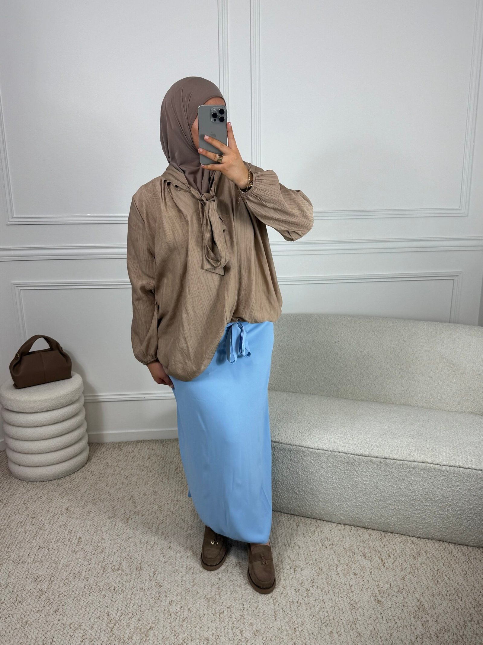 Le mannequin mesure 1m65 et porte une taille unique, Disponible en plusieurs coloris.