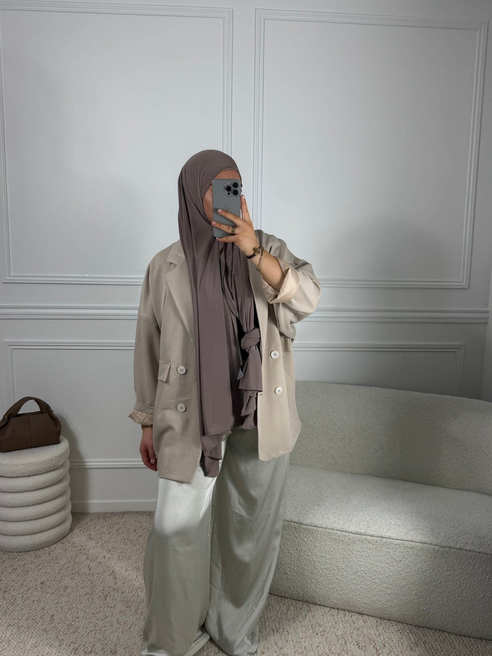 Ce blazer oversize est une pièce classique et intemporelle. Sa coupe large et ses petits boutons discrets sur toute la longueur apportent une touche simple et élégante. Parfait pour un look décontracté ou habillé.