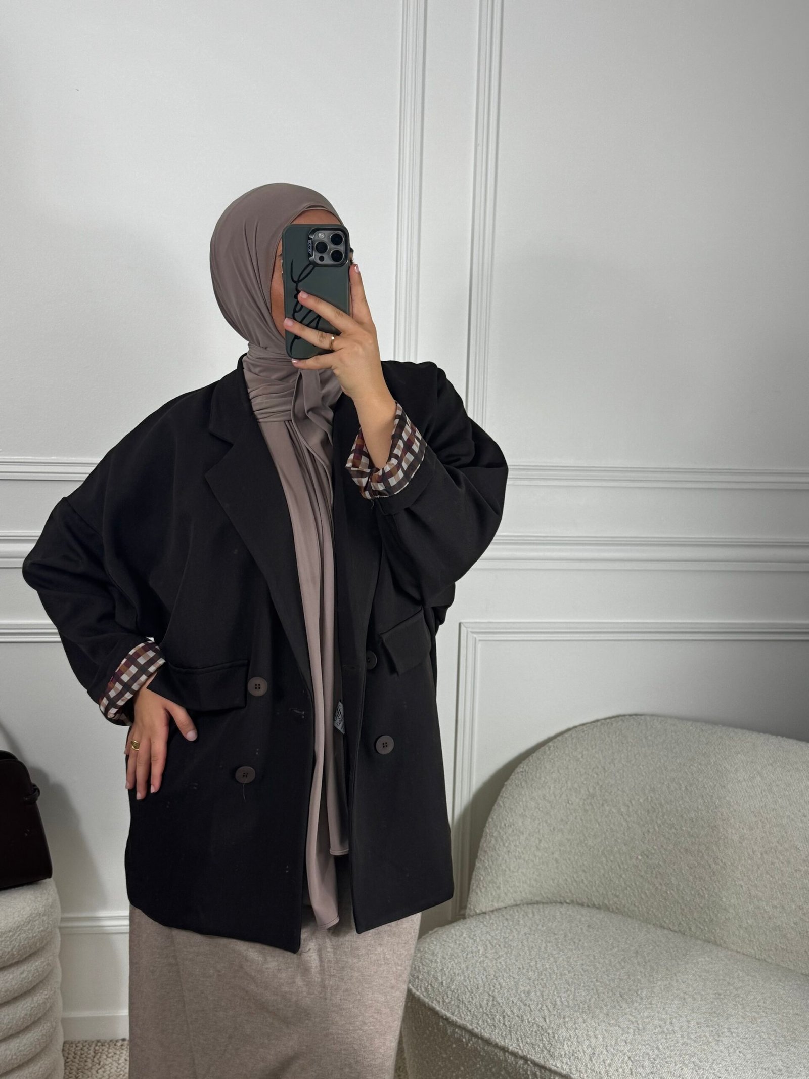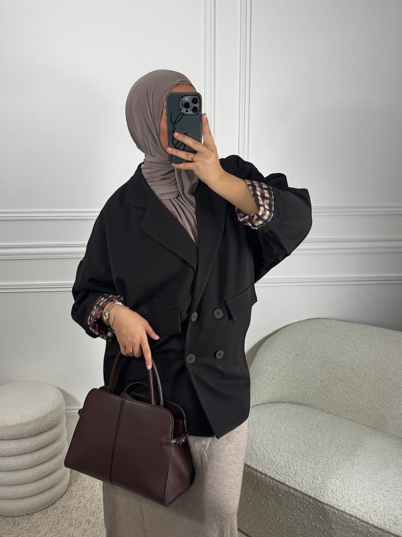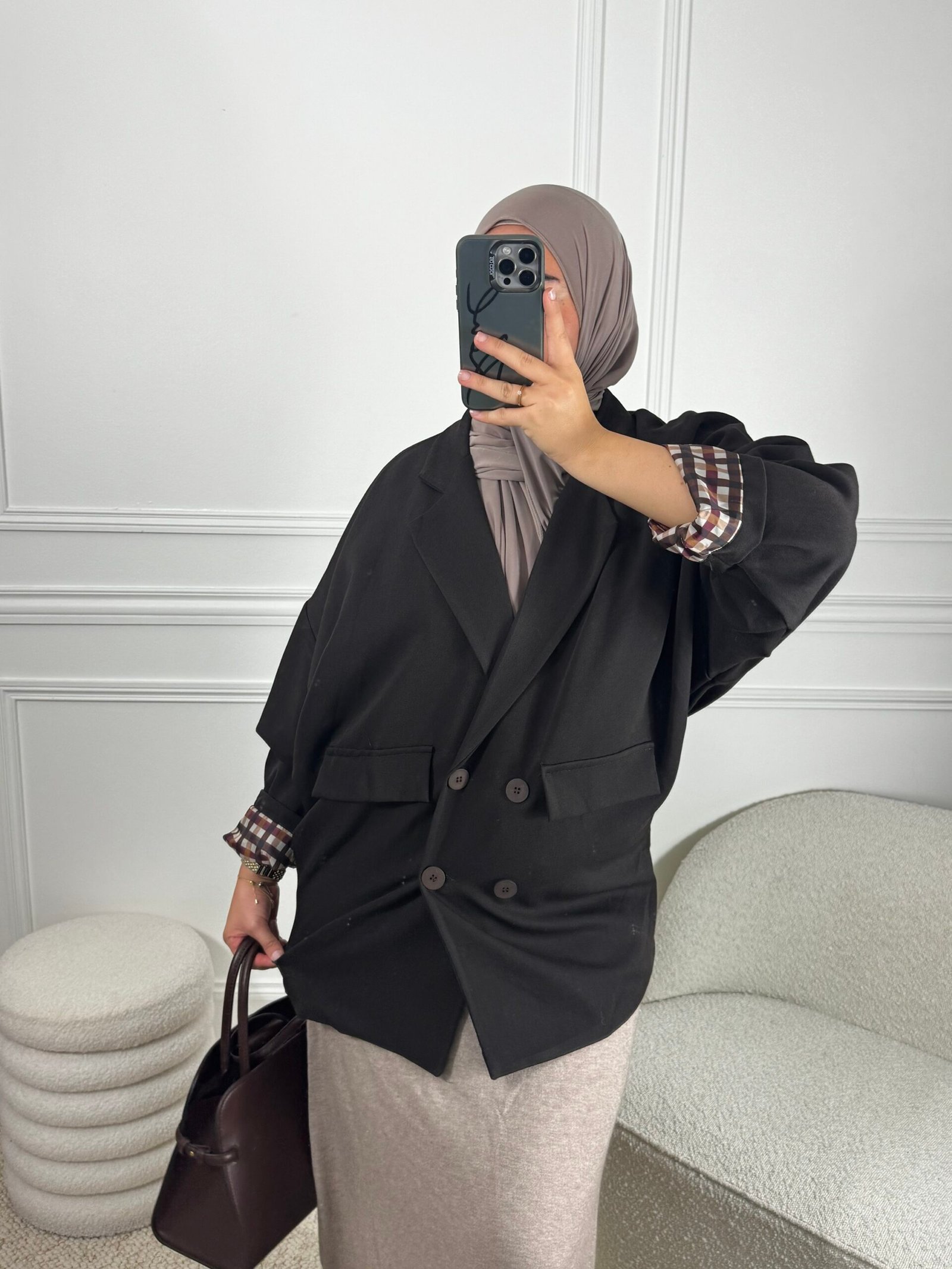 Blazer oversize à carreaux – marron