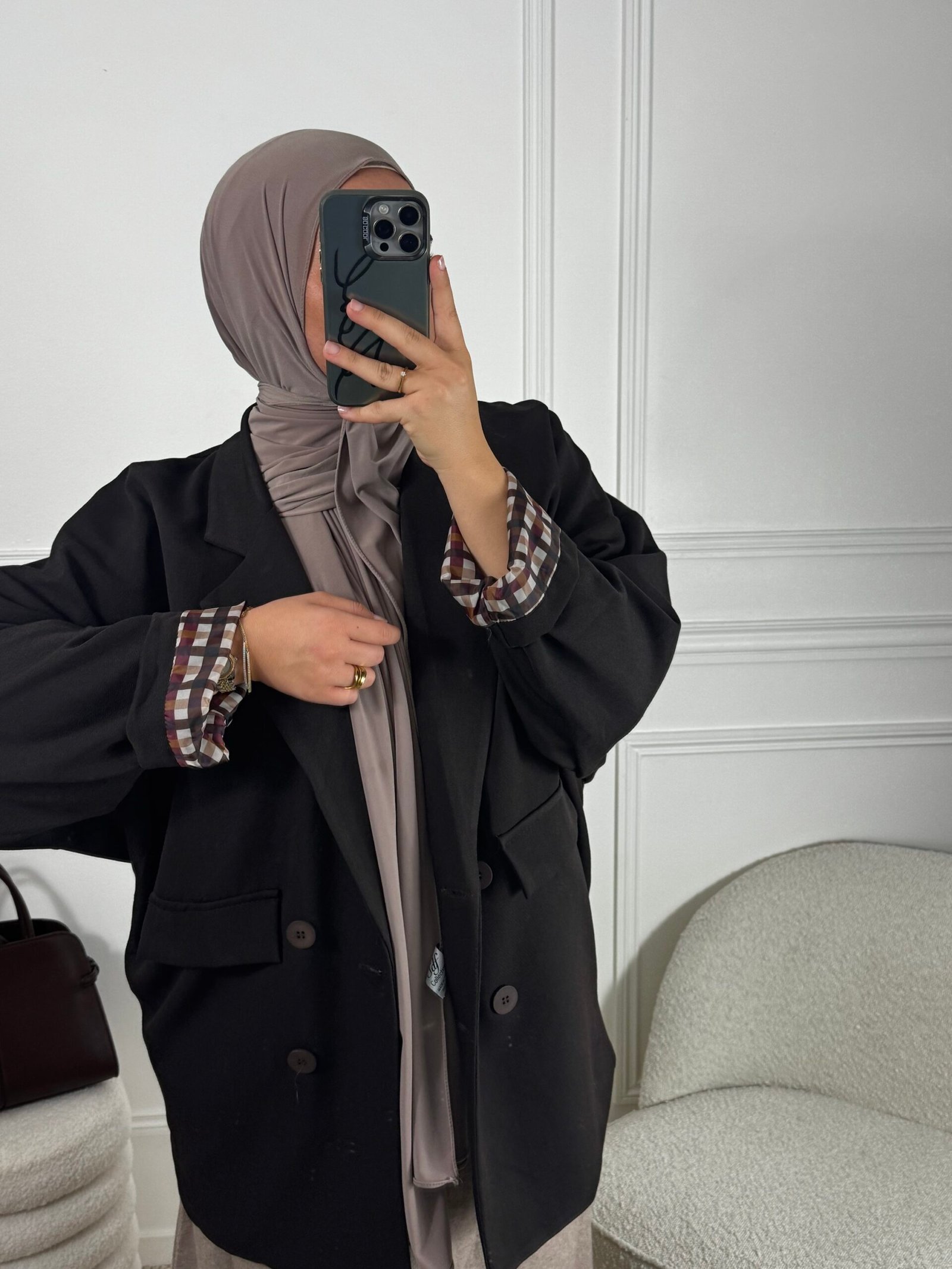 Lorsque les manches sont retroussées, des motifs à carreaux apparaissent et apportent une touche tendance.