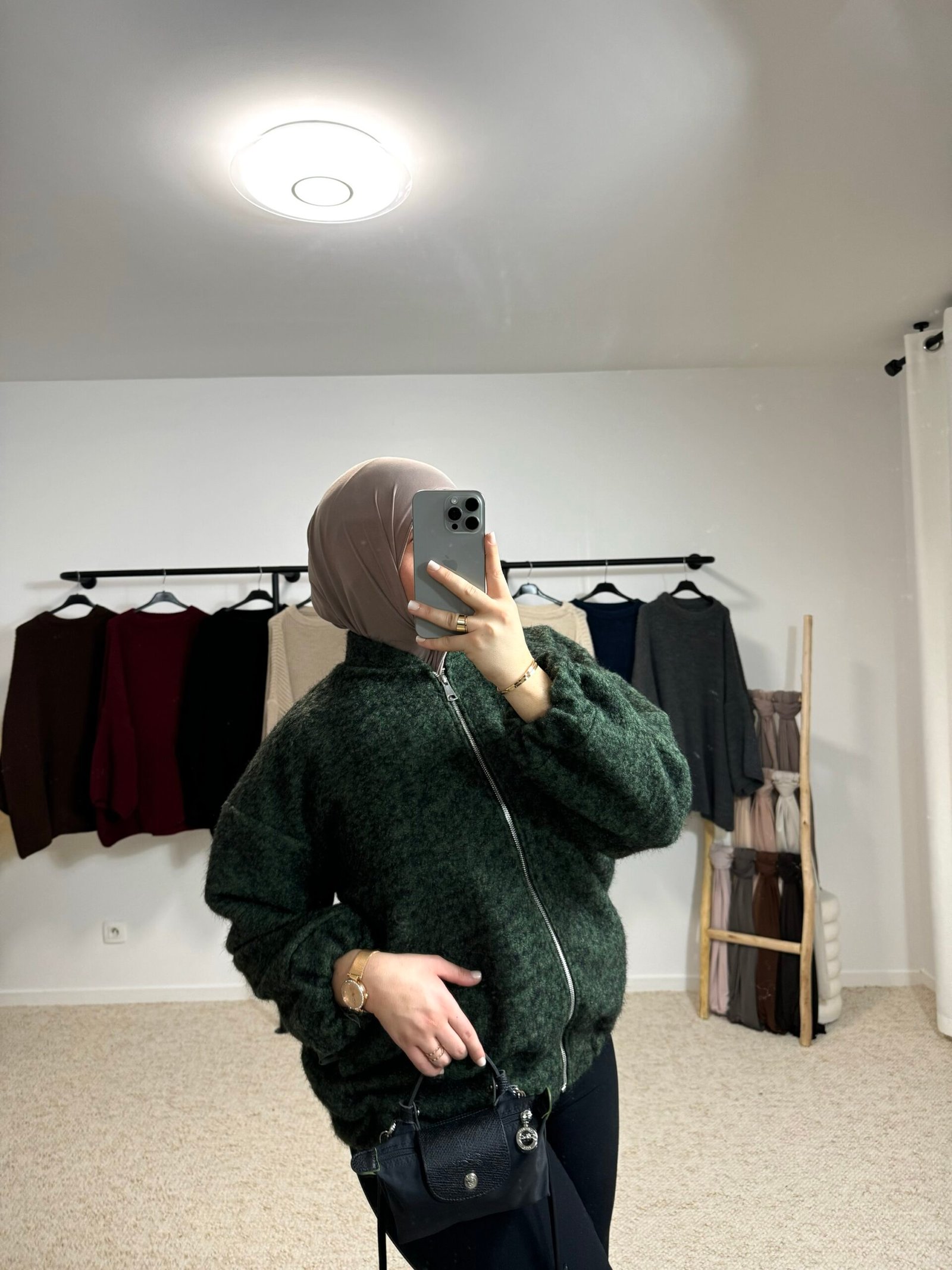 Le bombers est en laine bouclée, avec une fermeture éclair et des poches pratiques de chaque côté. Un modèle à la fois chaud et stylé.