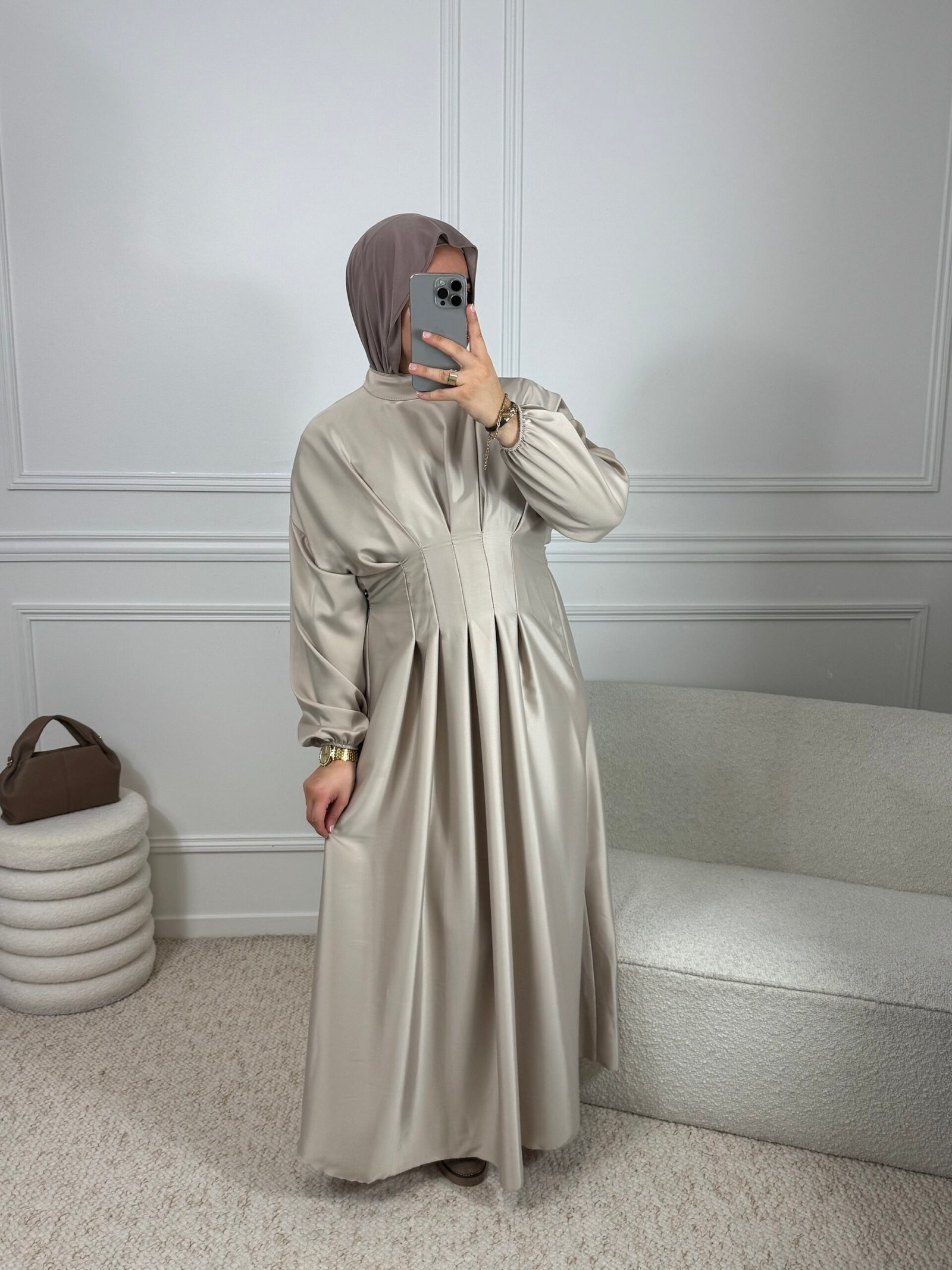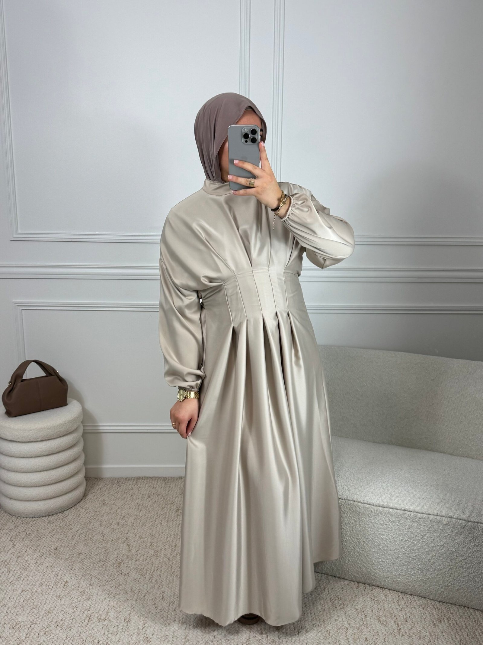 Une robe sophistiquée qui se distingue par ses manches légèrement bouffantes et son joli col. Elle se noue à l’arrière pour un ajustement parfait. Au centre, des détails délicats créent un effet corset qui structure la silhouette avec élégance. Un choix idéal pour l’Aïd et toutes les occasions spéciales.